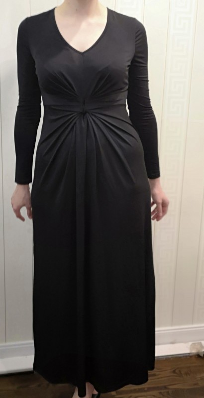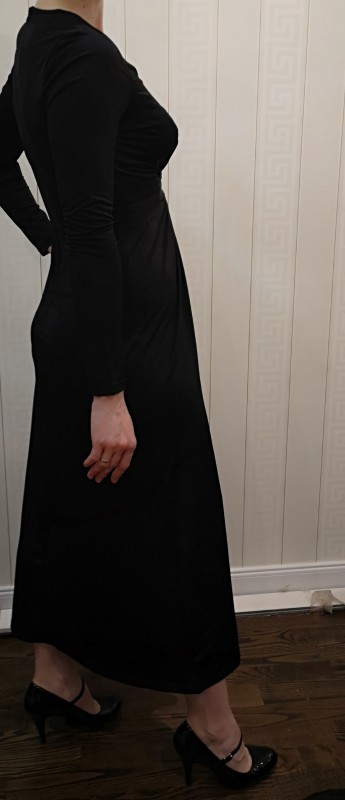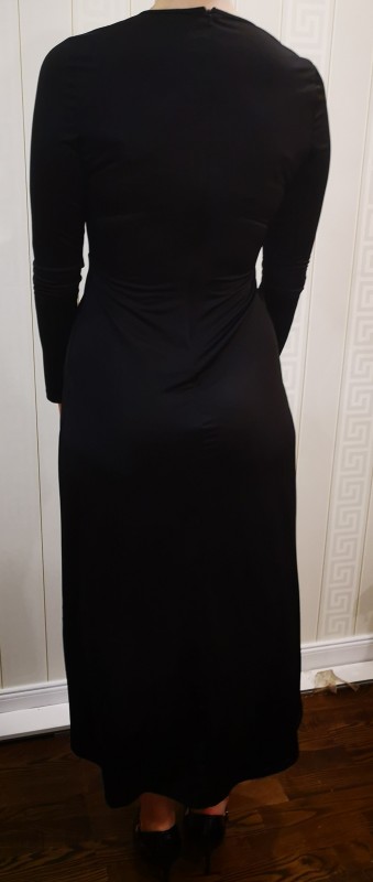Plono tamraus audinio juoda Apart suknelė su kloste priekyje.