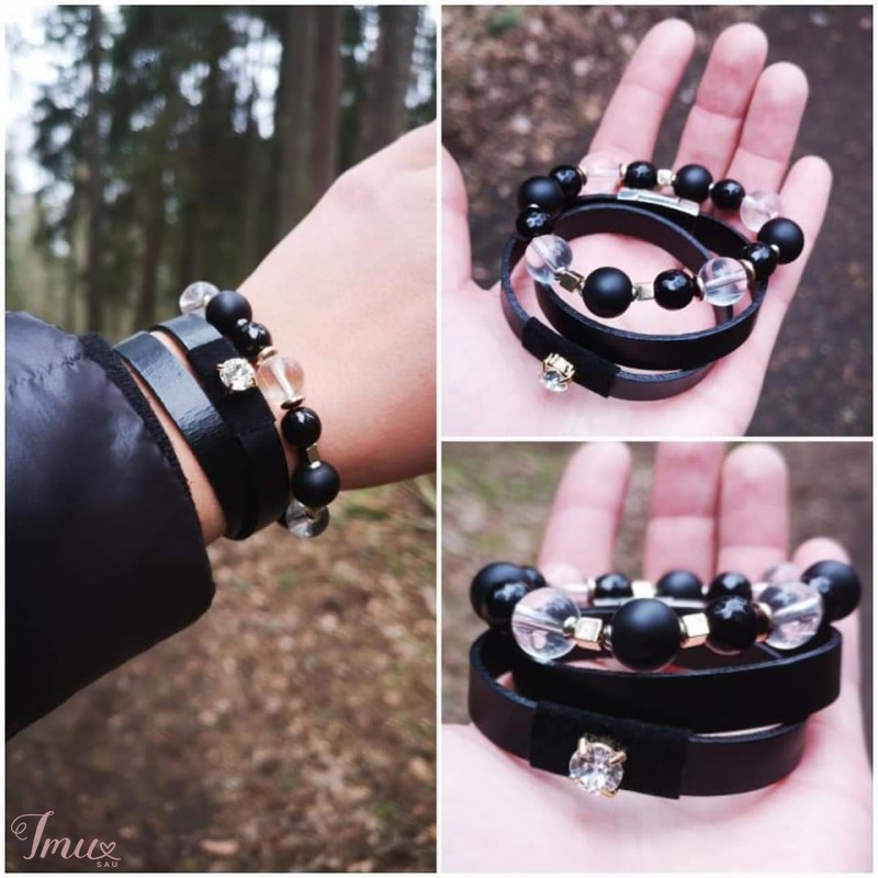 Odinė apyrankė su swarovski kristalu. Apyrankė iš akmenukų hematito, onikso, šungito, kalnų krištolo.