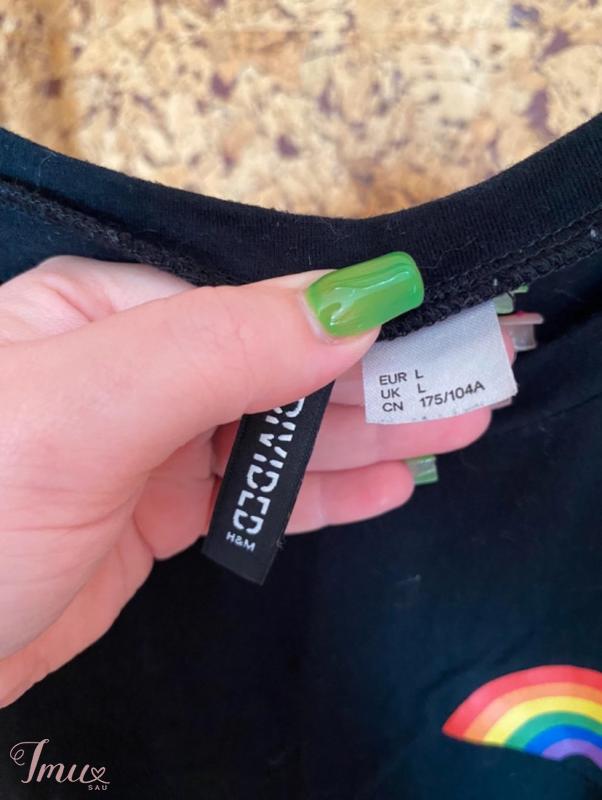 Juoda crop-top maikutė. Vienoj vietoj yra šiek tiek burbuliukų, bet juos lengvai galima pašalinti su skustuku :) Rašo dydi L, bet tinka ir S/M nešiojančiom