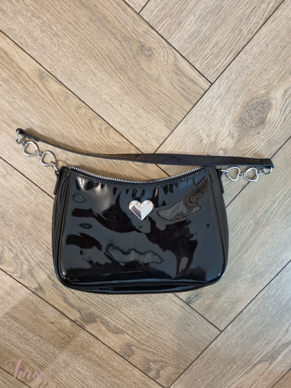 Nauja, labai puikios būklės rankinė. Rankinė yra blizgiu slidžiu paviršiumi. Taip pat jos paviršių puošia maža sidabro spalvos širdelė. Vidus švarus, defektų nėra. Rankinė pirkta iš H&M.