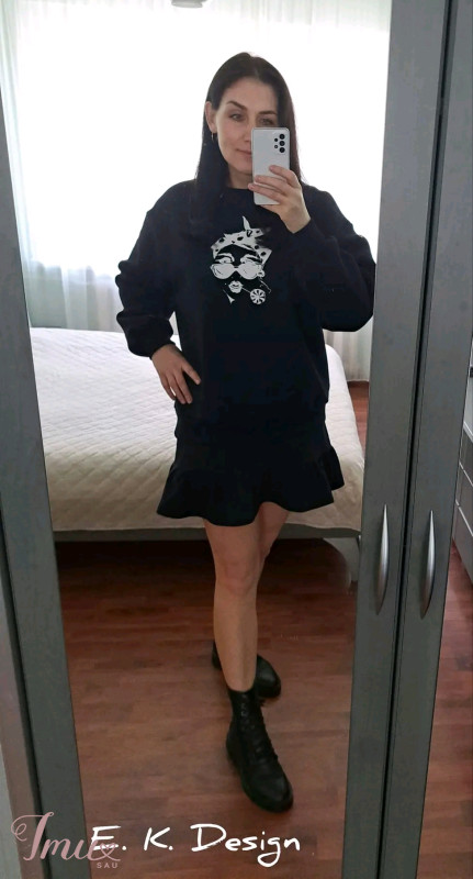Naujas juodo medvilninio trikotažo su pūkeliu džemperis. Dydis tiks nuo S iki L.