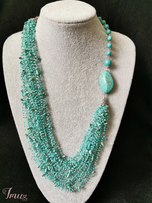 nertas kaklo papuošalas, turkio spalvos karoliukai, turkio akmuo