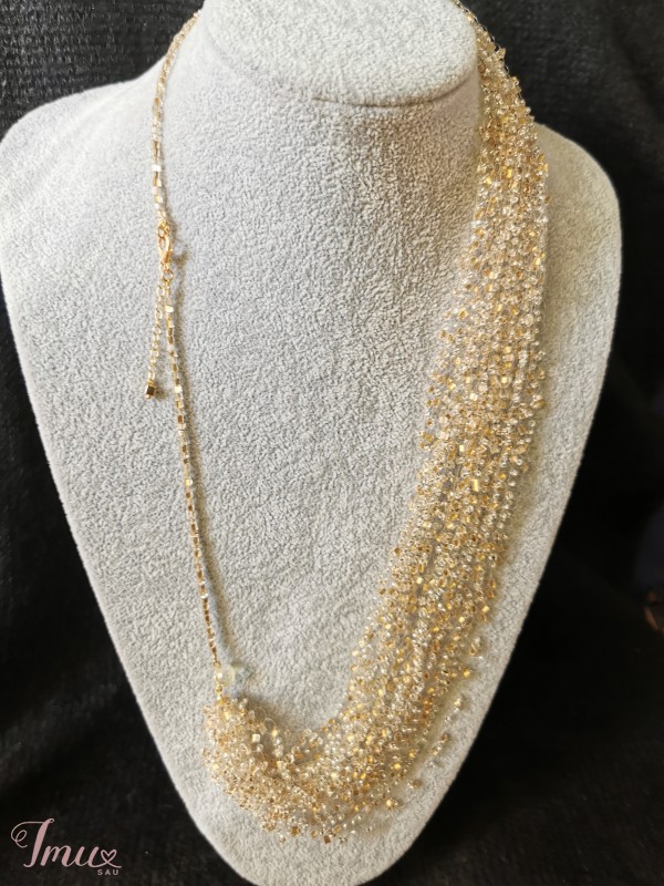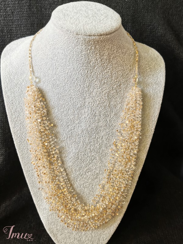 nertas kaklo papuošalas, baltos, auksinės spalvos karoliukai