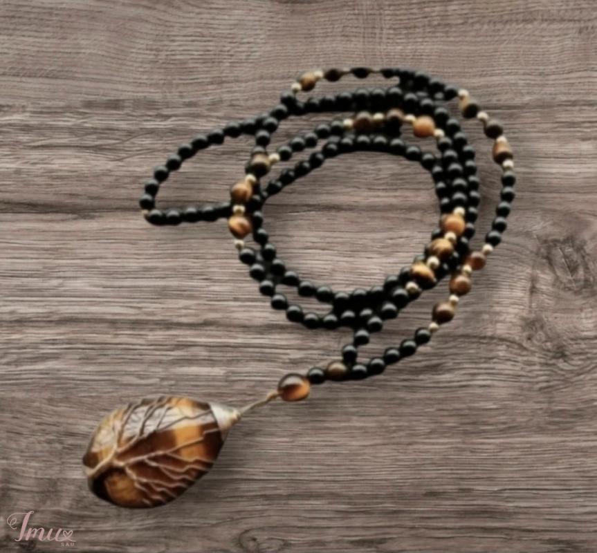 Atraskite išskirtinius kaklo papuošalus pagamintus iš juodų ir rudų karoliukų, dekoruotų stilingu natūralaus akmens pakabuku su elegantiškais metaliniais akcentais. Šie originalūs karoliai puikiai tinka pabrėžti jūsų individualumą ir suteikti išskirtinumo bet kuriai aprangai. Rinkitės juos tiek kasdienai, tiek ypatingoms progoms. Kaklo papuošalo ilgis – 43cm. Pagamintas iš natūralaus akmens. Ideali dovana ieškantiems stilingo ir nepakartojamo papuošalo. Patogiai galite isigyti mūsų el. parduotuvėje www.lvashop.lt