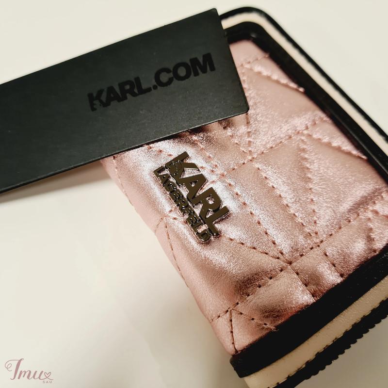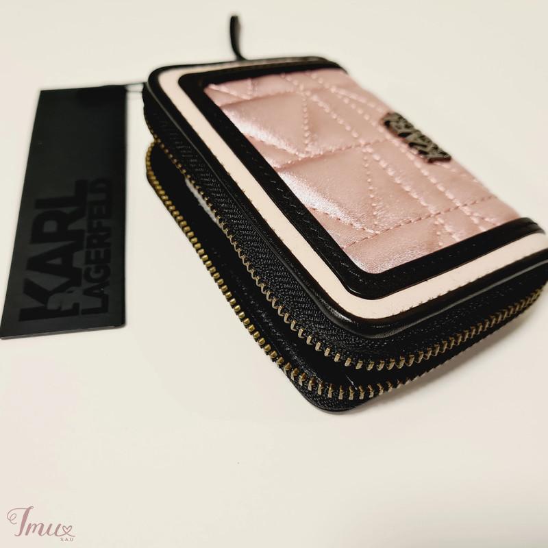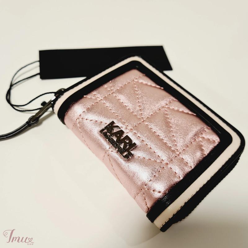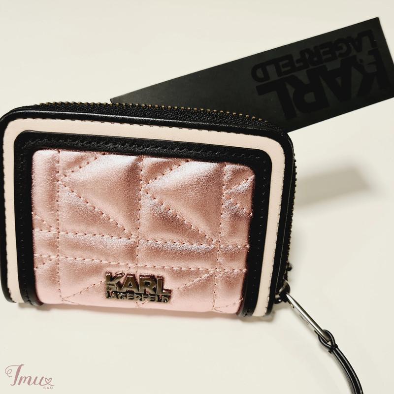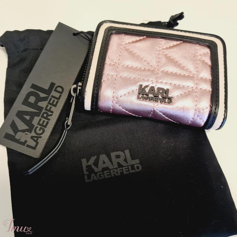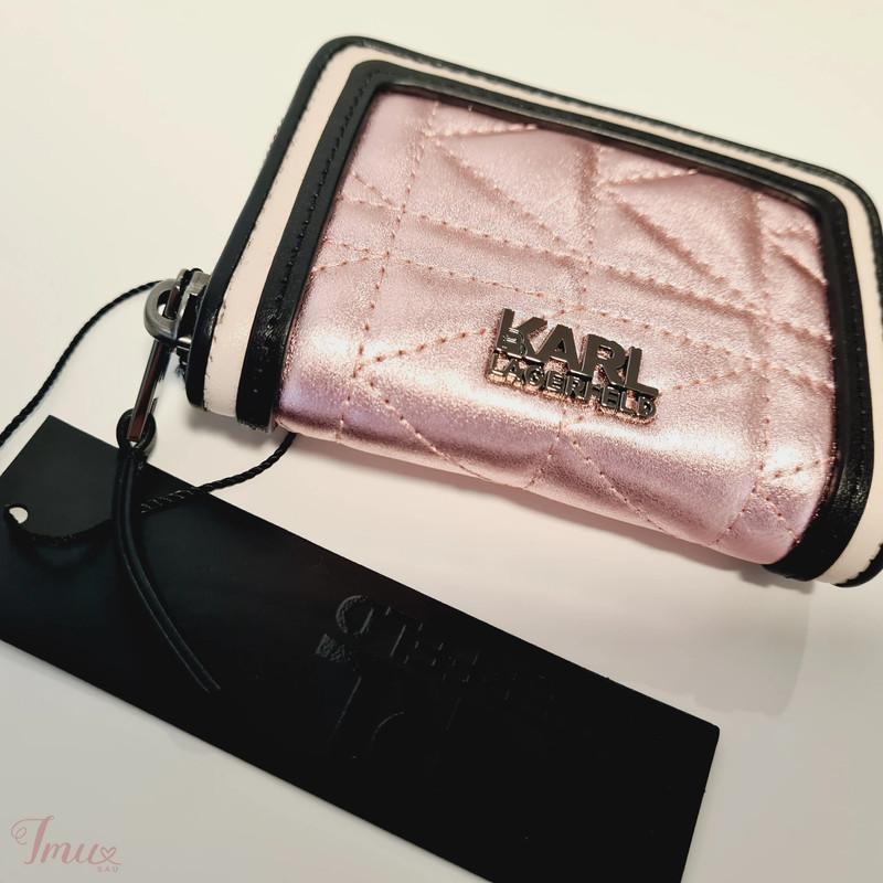 Rožinė blizgi KARL LAGERFELD odinė piniginė su užtrauktuku. Spalva: metallic pink. Su medvilniniu raišteliais surišamu dovanų maišeliu. Dydis: ilgis x aukštis x plotis - 12cm x 3cm x 8,5cm Visiškai nauja, niekada nedėvėta, originaliame maišelyje su etikete.