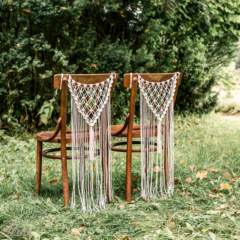 www.facebook.com/savannaLT www.instagram.com/savanna.lt/ Dekoracija tinka puošti kėdes vestuvių ar kitos šventės proga. Sukuria lengvą boho nuotaiką. Matmenys: ilgis 75 cm; plotis 34 cm; Virvė medvilnė; Siuntimas omniva paštomatu 3 eur; Kaina 2vnt. 35 eurai. Kreipkitės savannaHome.info@gmail.com – atrašysiu kuo greičiau 🙂