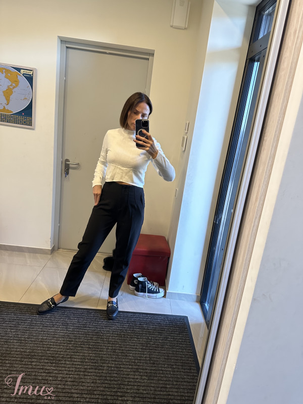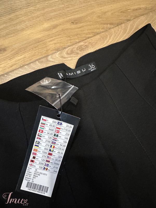 nujos su etiktėm kelnes, aukštu liemniu, dydis S, mano ūgis 1,65, įprastai dėvimas dydis s/m, liemuo 33x2cm, visas ilgis 99cm, ilgis nuo klyno 69cm. Taip pat parduodu ir kelnes- mano vinted spintoje. #kelnes #trumpesniomodelio #juodoskelnes #klasikineskelnes atvira kainos derinimui, perkant kelis ar daugiau rubelius padarysiu nuolaidą