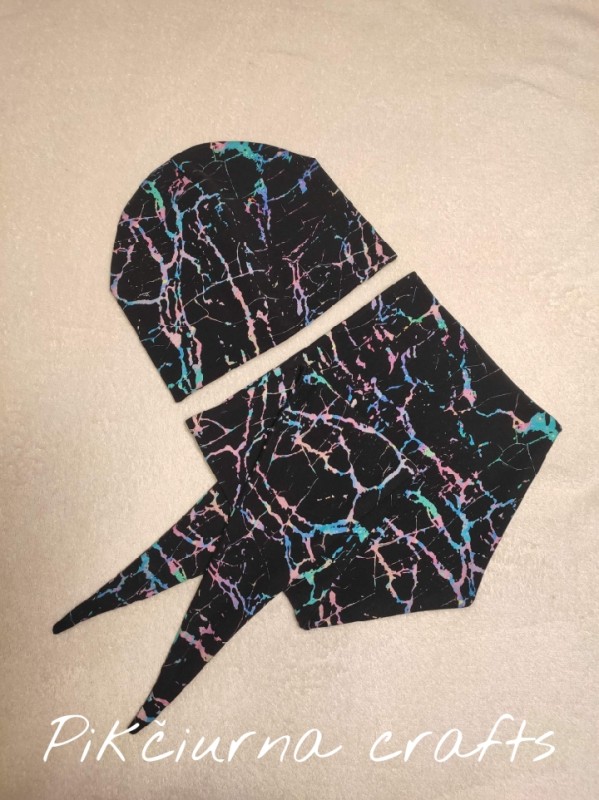 Kepurė ir rišama kaklaskarė 46/48 d. Galimi kitų dydžių užsakymai iš jūsų pasirinktų audinių.