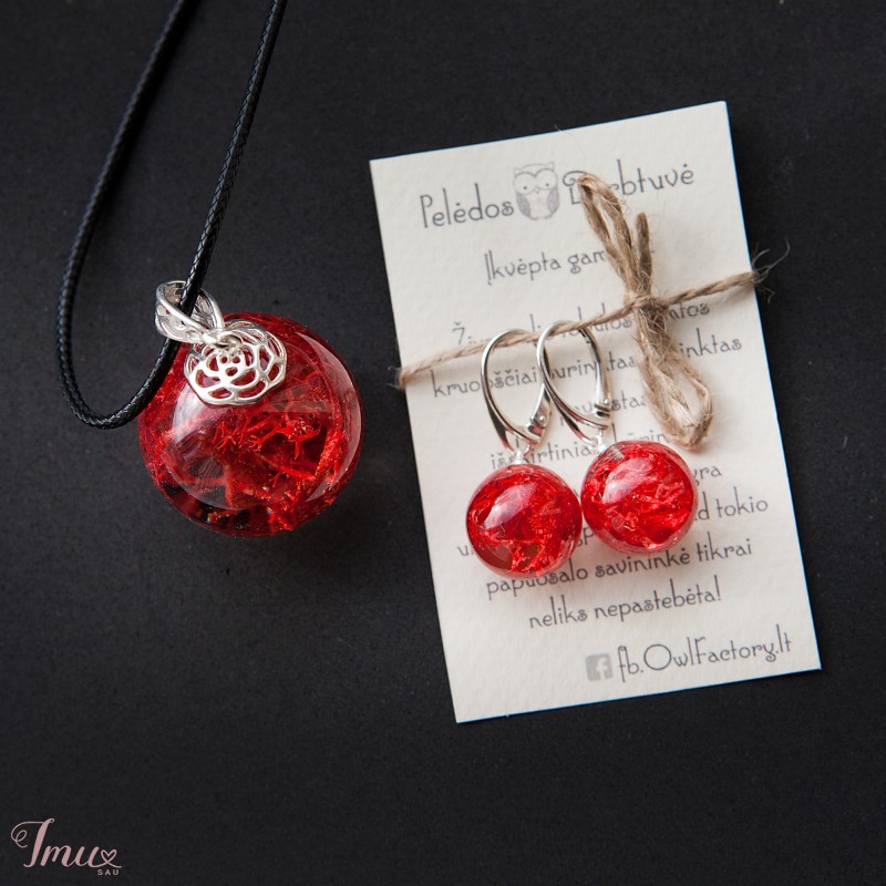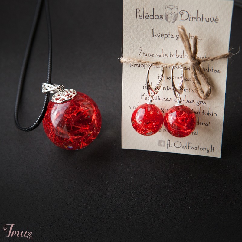 Papuošalai su tikrais augalais (samanos) ir aukštos kokybės juvelyrine derva, lengvi, nedūžta. Auskarai : užsegimai - sidabras, skersmuo ~15mm; Pakabukas: laikiklis sidabras, skersmuo ~30mm; *Perkant atskirai brangiau, komplektams taikau nuolaidas: Auskarai - 20€; Pakabukas - 20€;