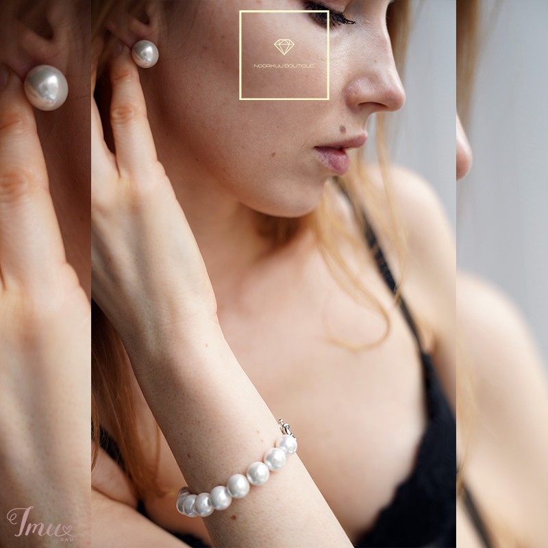 1. Sidabriniai auskarai su perlais iš natūralios kriauklyčių pudros. 925. Perlų skersmuo 12 mm. 2. Apyrankė iš natūralių kriauklyčių pudros perlų. Perlo skersmuo 10mm. Sąsaga iš nerūdijančio plieno. Ilgis 18cm Prekė supakuota į baltos spalvos, gražią, puošnią dėžutę. Prekes išsiunčiame per 1 d.d. nuo apmokėjimo. Brendas Noorkuu boutique https://lt.noorkuuboutique.eu/