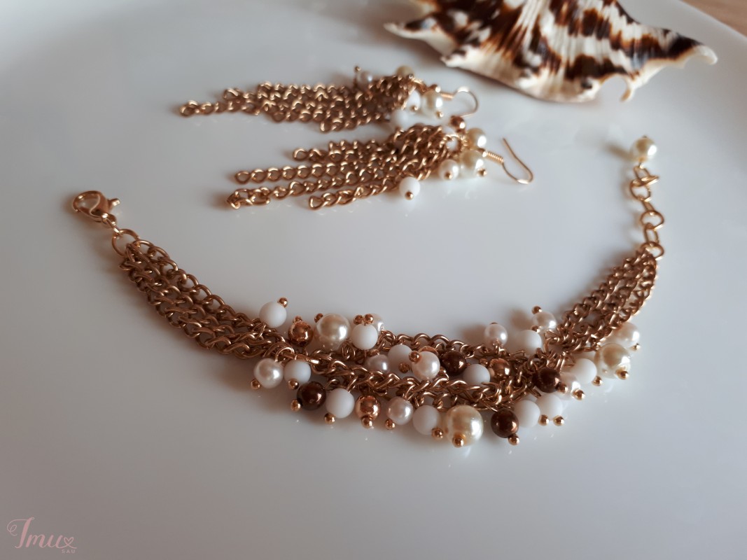Apyrankės ir auskarų komplektas, oniksas, hematitas, stiklo perlai, aukso spalvos furnitūra. Auskarų ilgis apie 6 cm. Siuntimas reg. paštu 1,6 eur, paštomatu 2 eur