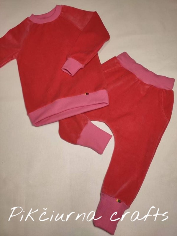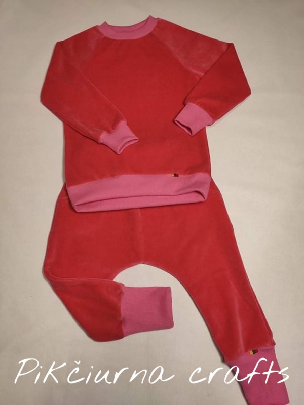 104 d. Koplektukas mergytei iš veliūro. Rožinio net neina perteikti spalvos ji tarsi prisirpusi avietė. Galimi kitų dydžių užsakymai iš jūsų pasirinktų audinių, bei galima užsakyti atskirai.