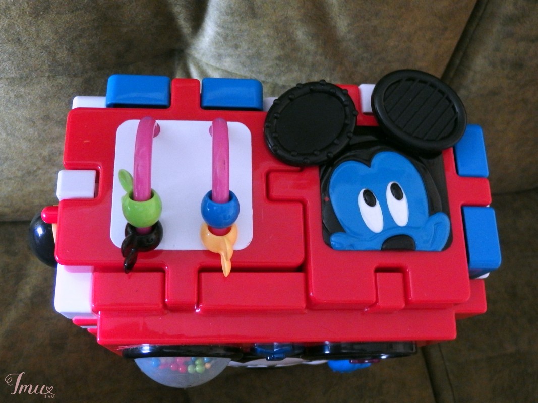 Konstrukcinis žaislų galvosūkis Mickey Mouse :galima sujunkti kaladėles ,peliukas Mikis ir jo draugai yra13 vnt. kaladėlių. Ant pagrindinio didelio bloko paspaudžiate geltoną muzikinę natą, o žvaigždės mirksi, muzika groja, Miko galva sukasi ir kamuoliukai sprogsta mygtuke, konstrukcinis žaislų galvosūkis gali būti surinktas į bloką bet kurią kitą konfigūraciją .