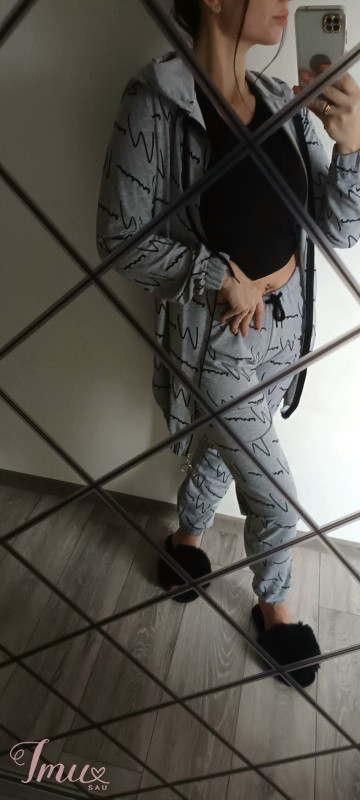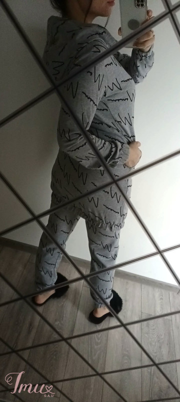 dvieju daliu ,dzemperis ilgas uzsisega uztrauktuku, ant kelniu juosmens gumyte, apacioje kelniu gumyte. raso xl atitinka m. fotografuota ant m dydzio.