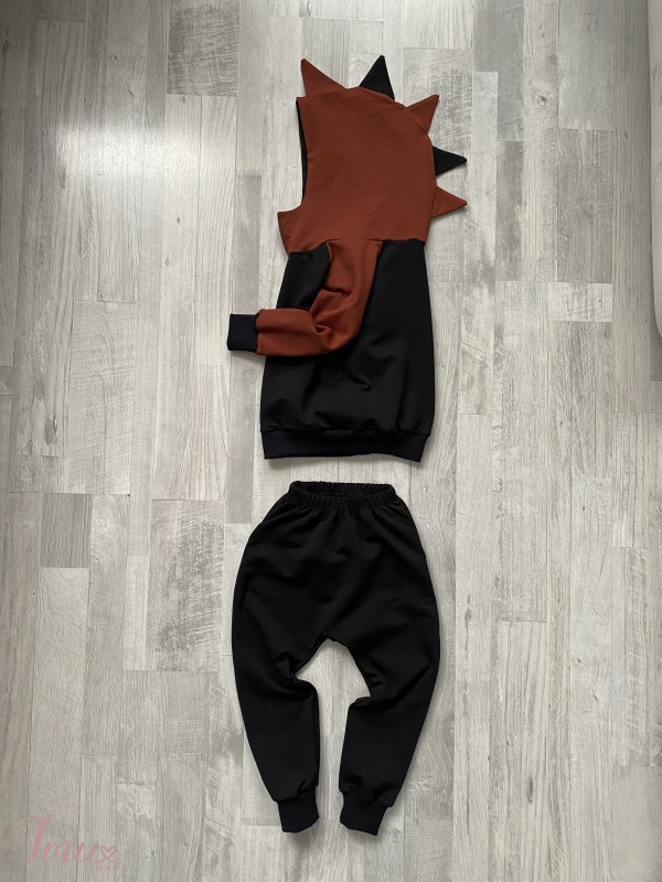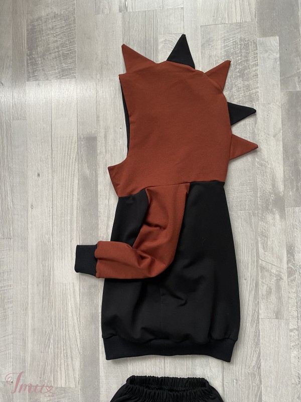 Naujas kostiumelis , su dinozauriuko spygliais. Medvilne su elastanu. Dydi atitinka 98. Rankovele nuo pazasties 28cm, kelnyciu ilgis 57cm.
