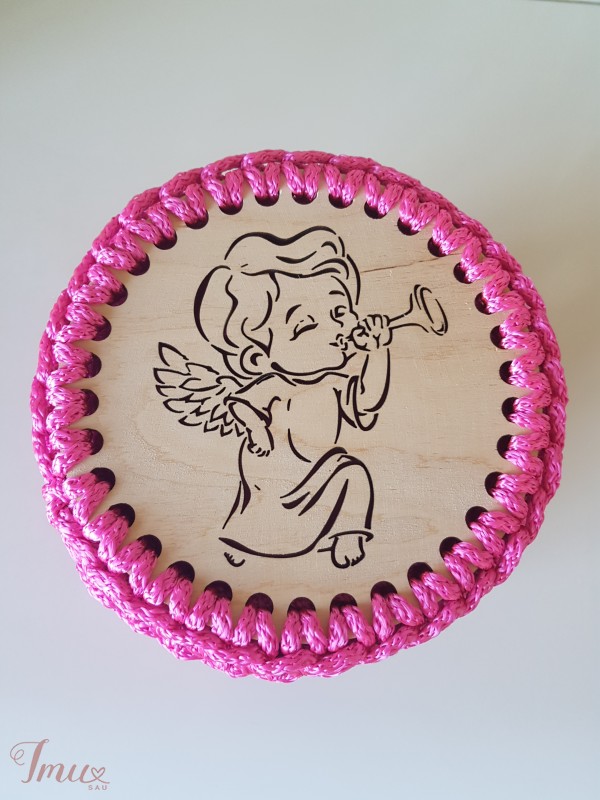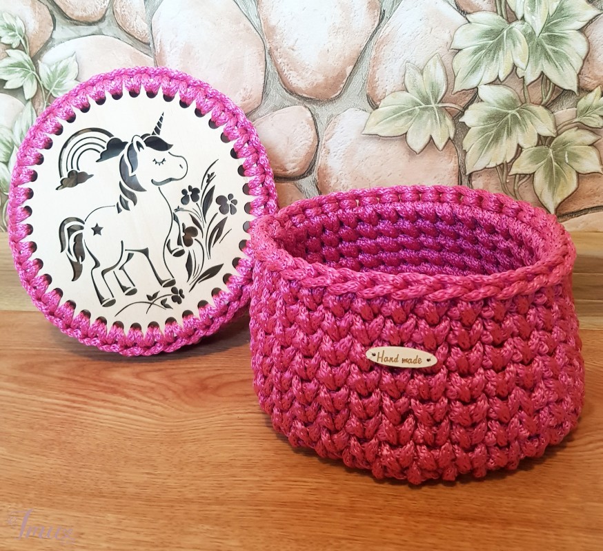 Įvairių spalvų, raštų krepšiukai į vaikų kambarius, ar dovanoms, mergaičių akresuarams, kremukams, smulkiems žaisliukams. Gali būti su dangteliu mediniu arba mediniu pagrindu. 17×17×11cm