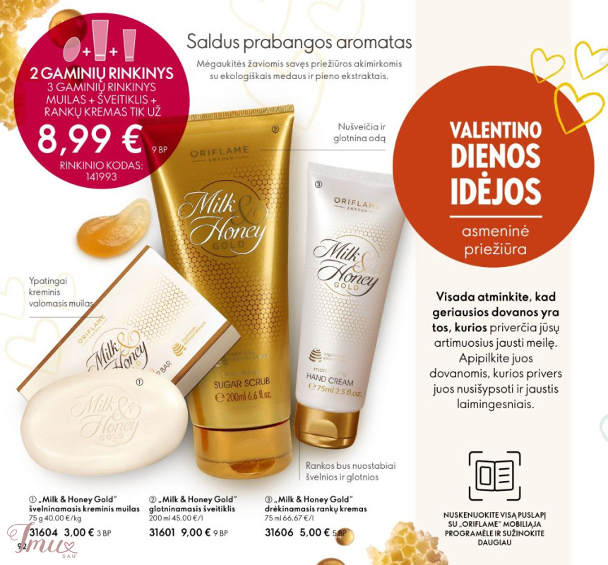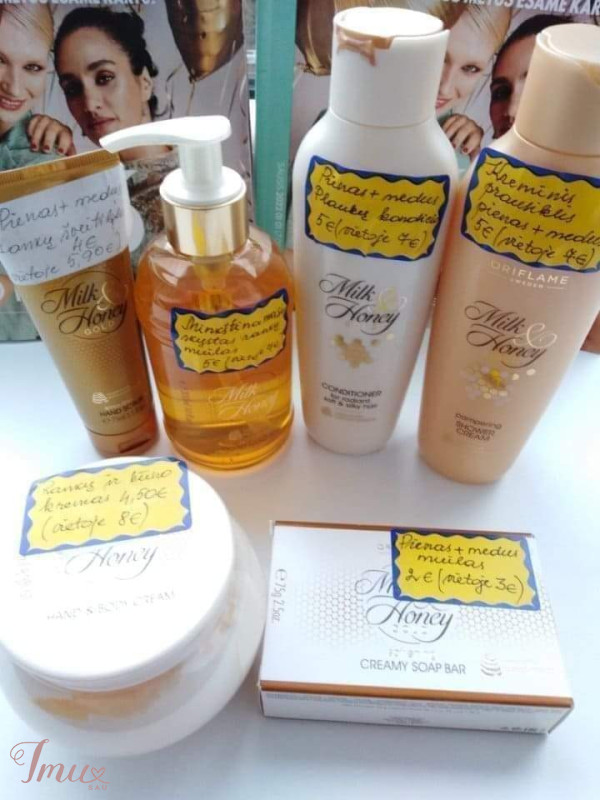 0RIFLAME Milk I Honey. PRABANGUS Pienas ir medus Jie labai naudingi odai. Pienas - gausu maitinamųjų sudėtinio dalių, kurios drėkina ir maitina. Medus - esantis cukrus - minkština, švelnina, puoselėja. Mineralai ir vitaminai - atkuria spindesį ir žvilgesį. 🦋Kvapas super 🦋Oda labai švelni, glotni, išpuoselėta. 🦋Nusiprausus netraukia odos. 🦋Ne džiovina odos, rankų 🦋Įpatingai puoselėja, 🦋Intensyviai maitina 🦋Drėkina 24 val. 🦋Puikiai susigeria. 🦋Muilas su glicerinu, talku, pieno ir medaus ekstraktu 🌹Šveitiklis 200 ml kaina 7 € (vietoje 9 €) 🌹Rankų šveitiklis kaina 4 € (vietoje 5.90 €) 🌹Kreminis prausiklis 250 ml kaina 5 € (vietoj 7 €) 🌹Rankų ir kūno kremas 250 ml kaina 4.50 € (vietoj 8 €) 🌹Minkštinamasis skystas rankų muilas 300 ml kaina 5 € (vietoj 7 €) 🌹Švelninamasis kreminis muilas 75 g kaina 2.30€ (vietoj 3€)