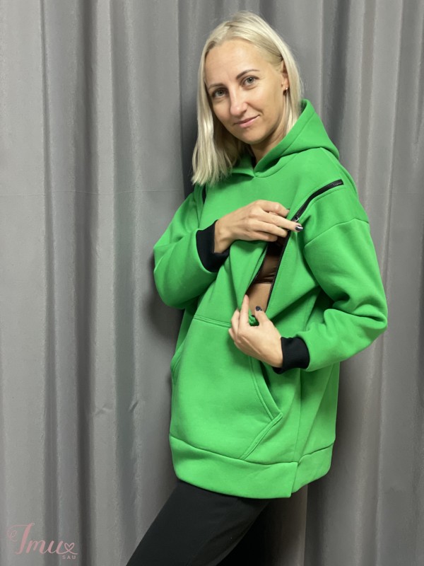 Malonaus medvilnės audinio laisvalaikio džemperis nėščioms, maitinančioms ir netik Džemperis turi užtrauktukus šonuose. Vidinė audinio pusė su pukeliu. Su kapišonu. Su kišenėmis. Dydis oversize Kaina 35 e facebook: Rūbų istorijos