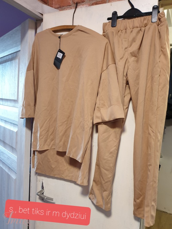 Naujas s, tiks ir m, tik kad kelnes bus labiau aptemptos. Tarp pazastu 67, ilgis is priekio 64, is galo 74 cm.Kelniu liemuo ant gumos 33 tempiasi iki 46 cm.