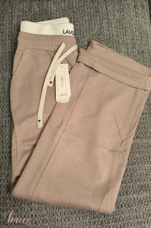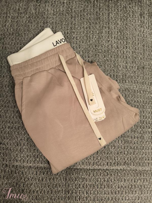 Stilingos laisvalaikio treninginės kelnės. Medvilnė, lengvas audinys. Visas ilgis 108 cm, klubai netempus 107cm