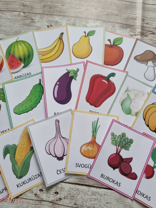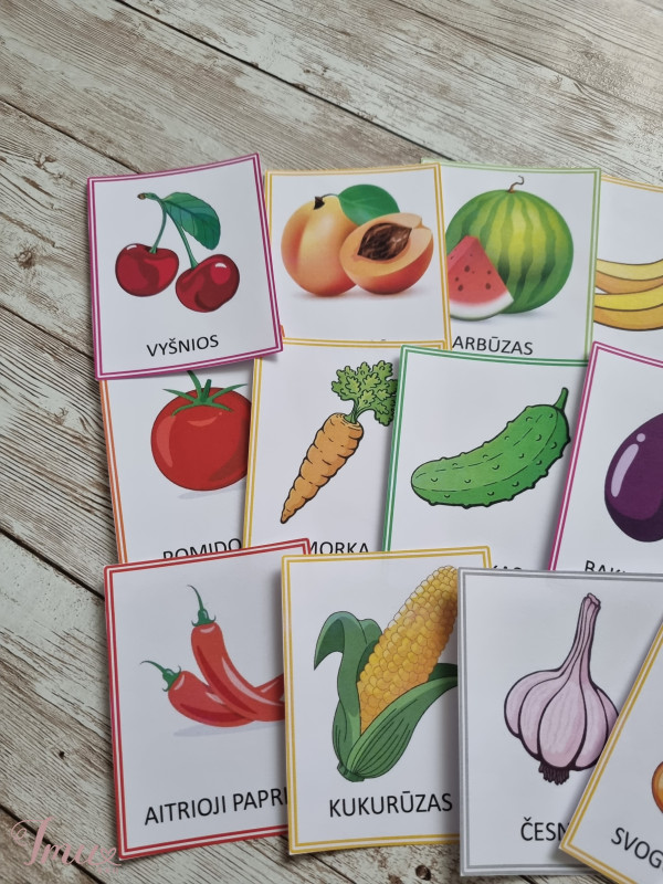 Laminuotos kortelės vaisiai ir daržovės