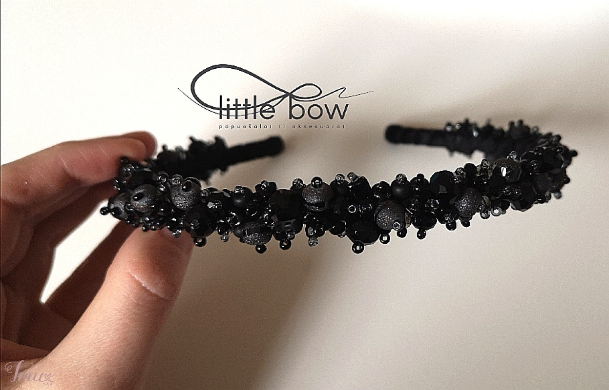 Naujas rankų darbo, karoliukais siuvinėtas lankelis ~1,5 cm pločio. Pagrindas metalinis (nelūžta), padengtas minkštu veliūro, dėl to nespaudžia galvos bei nekrenta, neslysta nuo plaukų. Puikiai tinka pasipuošti šventei, pritaikomas kasdieniame stiliuje.Atrodo išskirtinai ir itin dailiai.