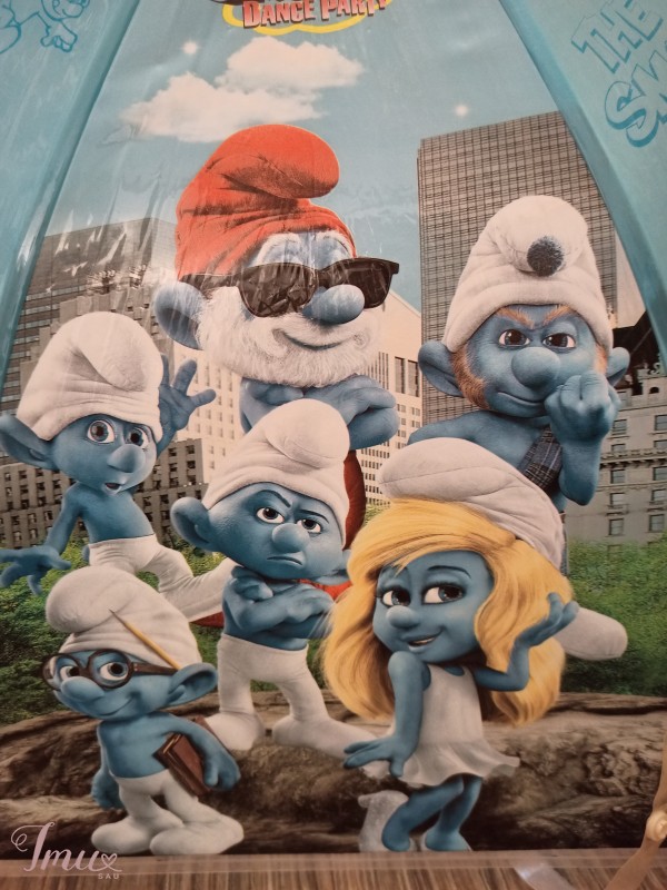 Automatinis skėtis. Su žinomo filmuko veikėjais smurfiukais 🥰.. Turi ir švilptuką.