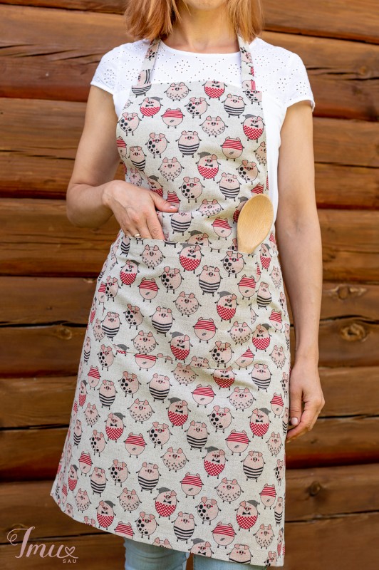 Lininė prijuostė "Paršeliai"