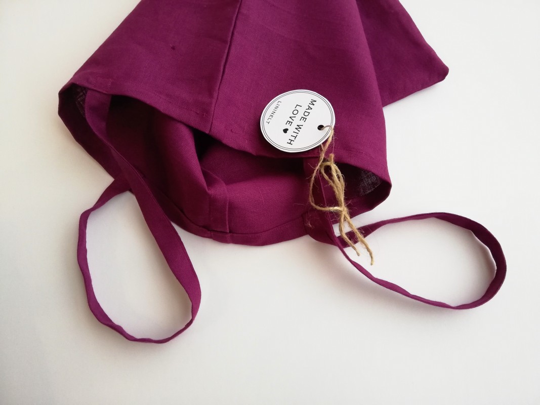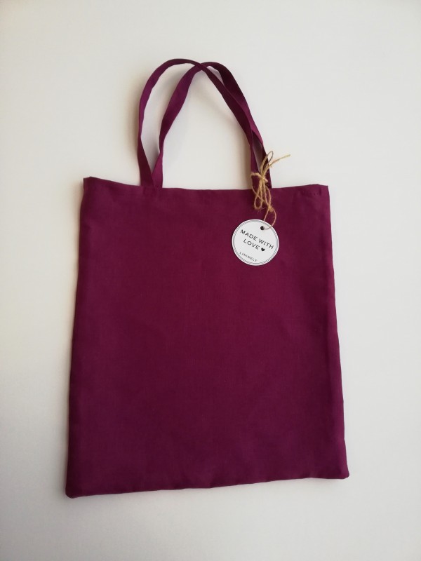 Rankų darbo lininis pirkinių maišelis. Matmenys: 35cm x 39cm