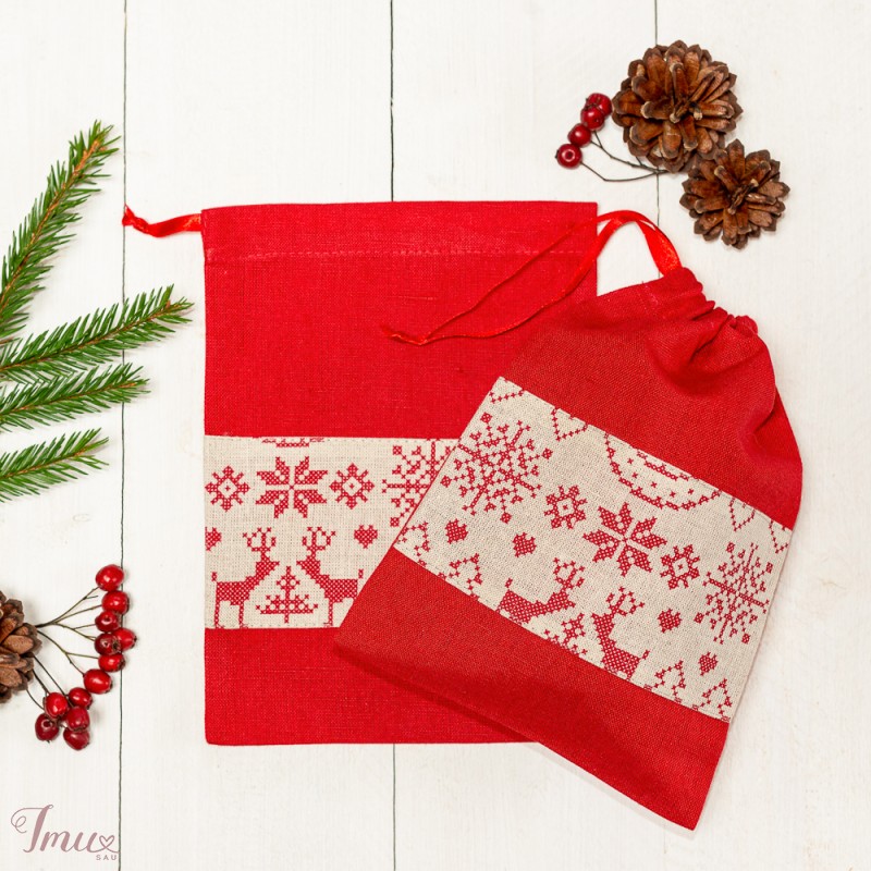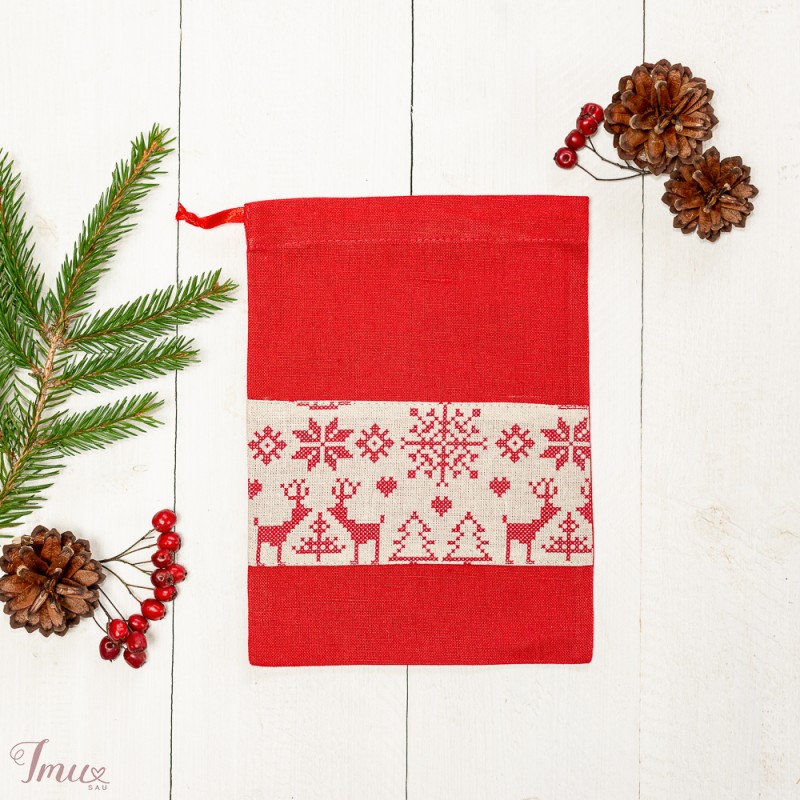 Lininis dovanų maišelis "Raudonas su elniais"