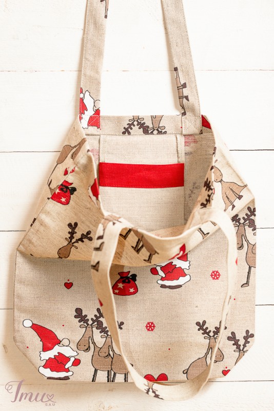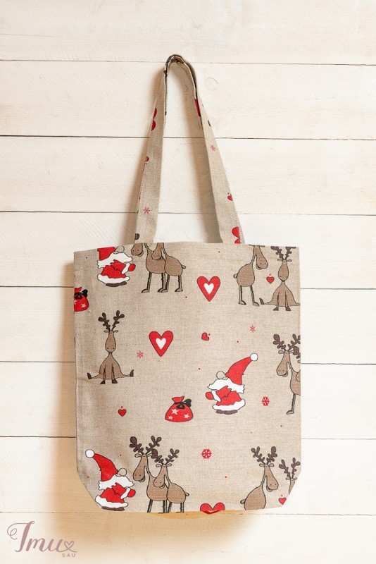 Lininis krepšys su vidine kišene. Dydis 35x37cm. Rankenų ilgis 60cm.