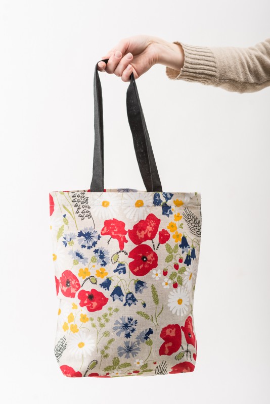 Lininis krepšys su vidine kišene. Dydis 35 x 37cm. Rankenų ilgis 60 cm.,
