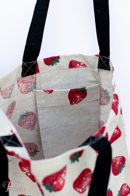 Talpus ir tvirtas lininis krepšys su vidine kišene. Dydis: 35 x37 cm. Rankenų ilgis 60 cm.