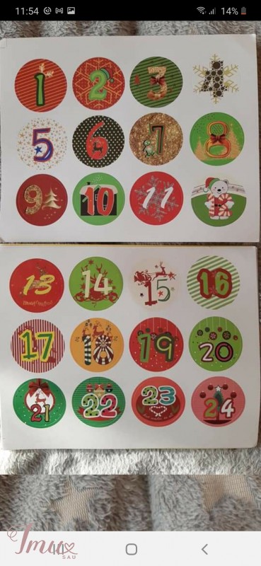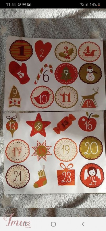 Lipdukai advento kalendoriui. Siuntimas paštu. +1€ Nestandartinės formos, įvairaus dydžio. Priešpaskutinės foto skersmuo 3cm, paskutineje skersmuo 2,7 cm. Šie dveji po 1,5€.