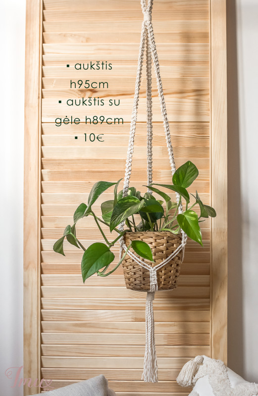 Macrame gėlių kabyklas puikus būdas apsaugoti gėles nuo kačių apkramtymo. Kabyklose labai gražiai žiūrisi Skindapai, Chlorofitai, Karolinė žilė, Morgano šilokas, Ceropegija paprastoji, Tradeskantė, maži sukulentai. Kabyklų informacija pateikta nuotraukose. Siuntimas omniva paštomatu +2,5 eur. Kreiptis el. paštu - g.senfeldaite@gmail.com