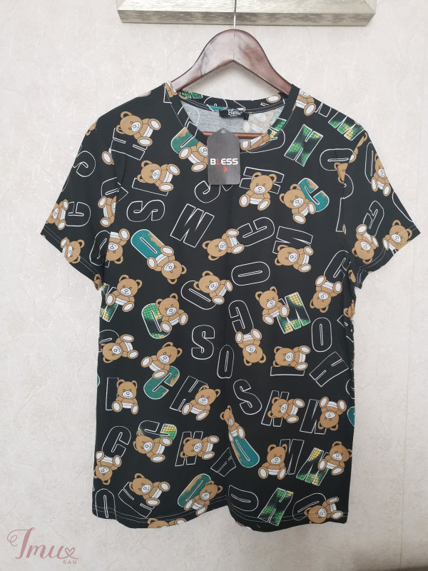 Taip ir nevilketa. Nauja. Raso dydi L, bet sakyciau gal labiau M. Visas ilgis nuo petuko 70cm, po pazastimis 54cm.