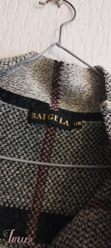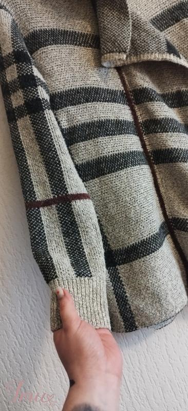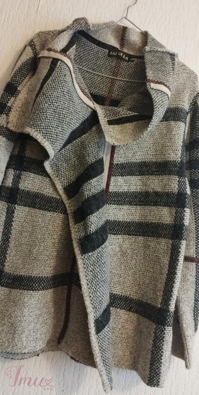 Dėvėtas bet be defektų, L/XL dydžio užsegamas užtrauktuku megztinis su kaklu. Labai gražus, kokybiškas bei šiltas. Išmatavimai: Ilgis 69 Tarp pažastų 44*2, tempiasi iki 60*2