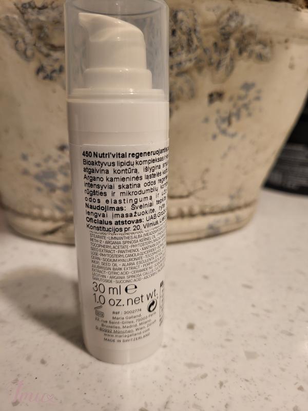 Maria Galland 450 Regeneruojantis paakių kremas su vitaminu B3 Profesionalus kiekis 30 ml. 15ml.kaina parduotuvėje 69€. Maria Galland 450 NUTRI’VITAL Eye Contour Cream– prabangus, maitinamasis kremas, skirtas švelniai paakių odai. Jo sudėtyje esantys taukmedžio sviestas, argano aliejus, bioaktyvus lipidų kompleksas ir kiti ingredientai suteikia odai švelnumo, padeda išlaikyti drėgmę ir suteikia komforto pojūtį. Glotni tekstūra švelniai įsigeria į odą, palikdama ją sudrėkintą ir atgaivintą. Tobulas pasirinkimas, jei norite, kad paakių sritis atrodytų gaivi ir puoselėjama kasdien.