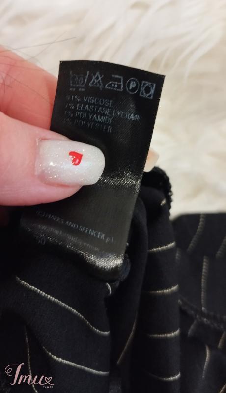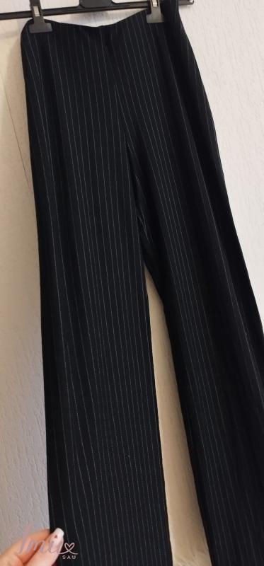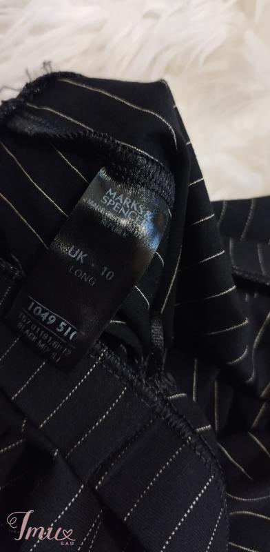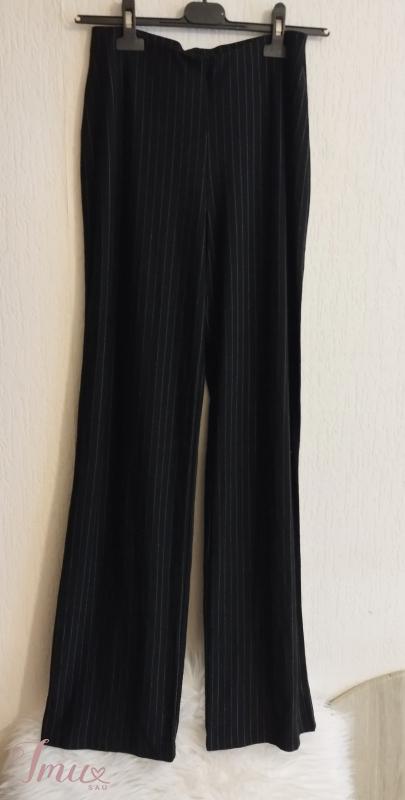 Marks & Spencer juodos su gelsvo dygsnio dryžiais max platėjančios tamprinės kelnės. Aukštai merginai! Aukštas liemuo! Max tamprumo! Kostiuminio stiliaus. Tobulos kelnės! Išryškina visus privalumus nes puikiai aptempia! Turi daug elastano. Dydis M/L. Dėvėtos bet visiškai be defektų. Sudėtis: 91% viskozė, 7% elastanas, 1% poliamidas, 1% poliesteris. Išmatavimai: Visas ilgis 109 Ilgis nuo klynuko 81 Liemuo netempus 34*2, tempiasi iki 55*2 Klubai netempus 45*2, tempiasi iki 73*2