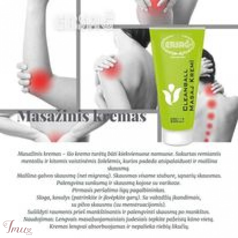 Masažinis kremas skirtas raumenų skausmams malšinti, pirmasis peršalimo ligų pagalbininkas, vabzd-ių įkandimams.