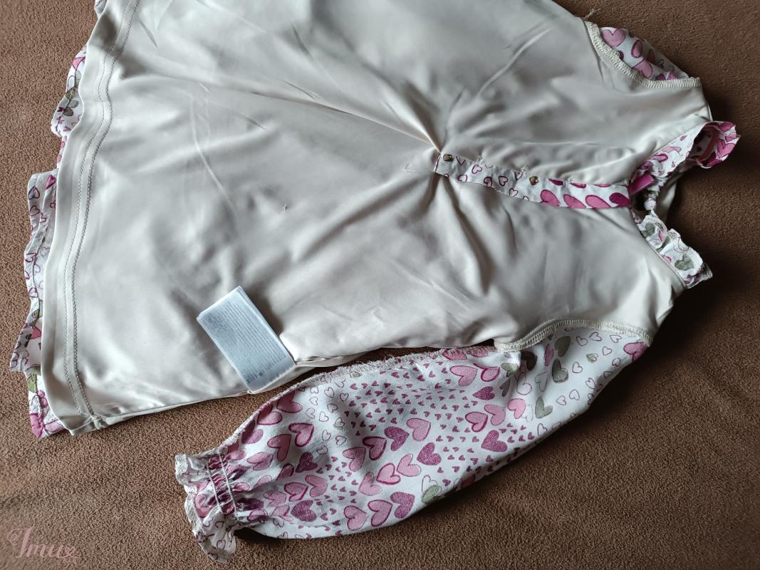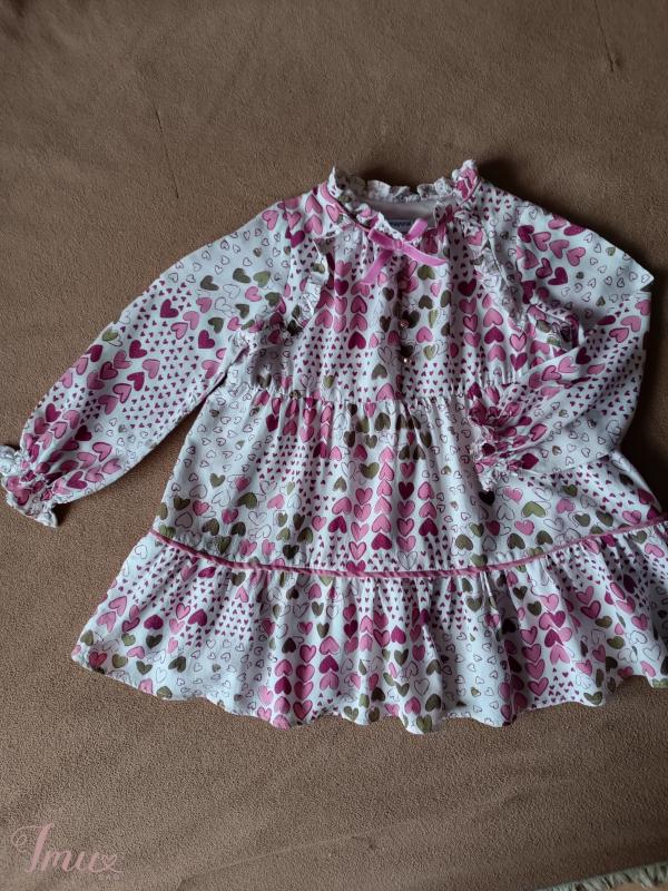 Ūgis 98 cm/3 metai Puošni suknelė ilgomis rankovėmis, dėvėta vos pora kartų, su trikotažo pamušalu per visą ilgį, susagstoma trimis sagutėmis, 97% viskozė, 3% fibra metalica (su blizgučiais)