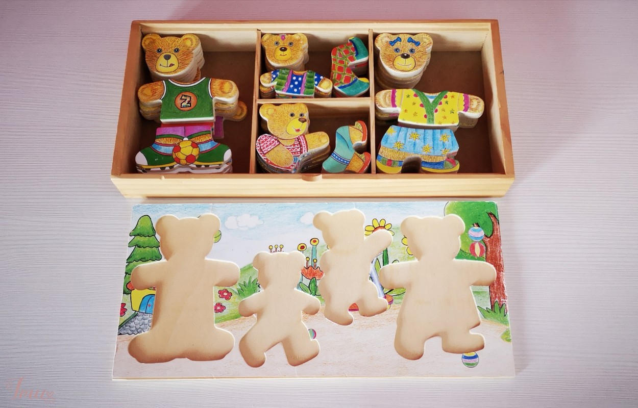 Medinė dėlionė Aprenk meškiukų šeimyną
