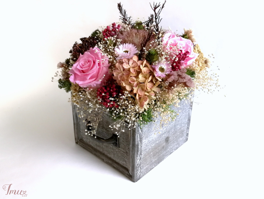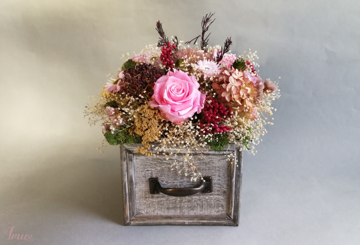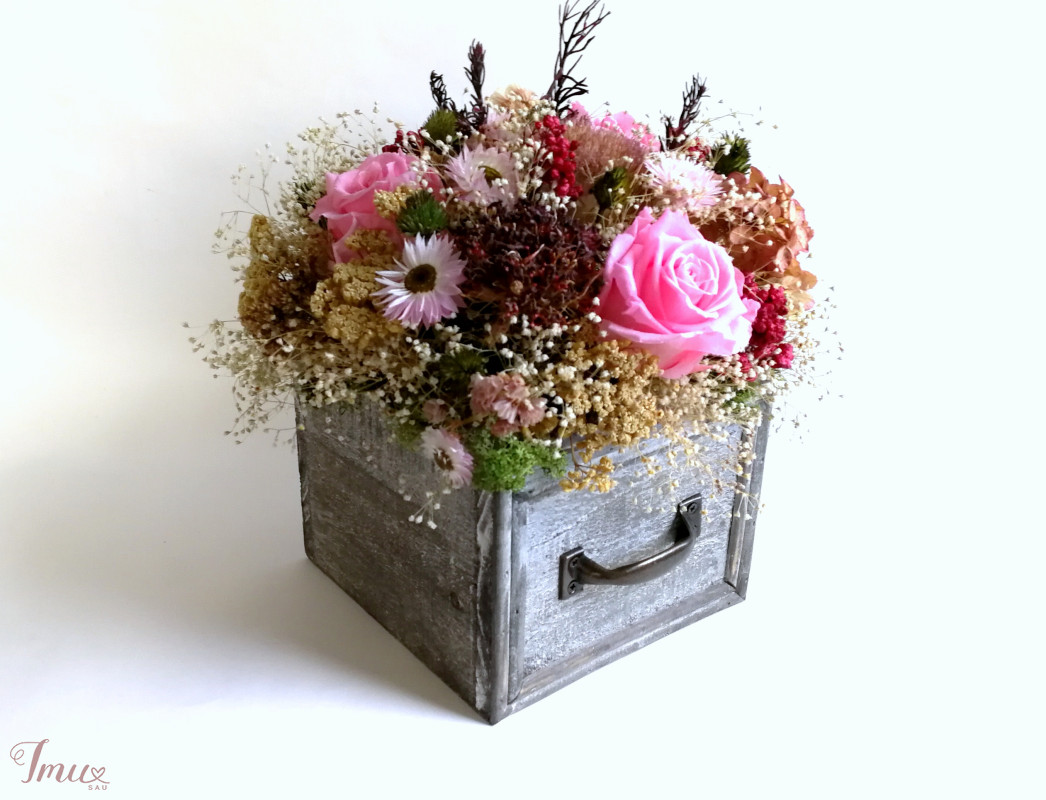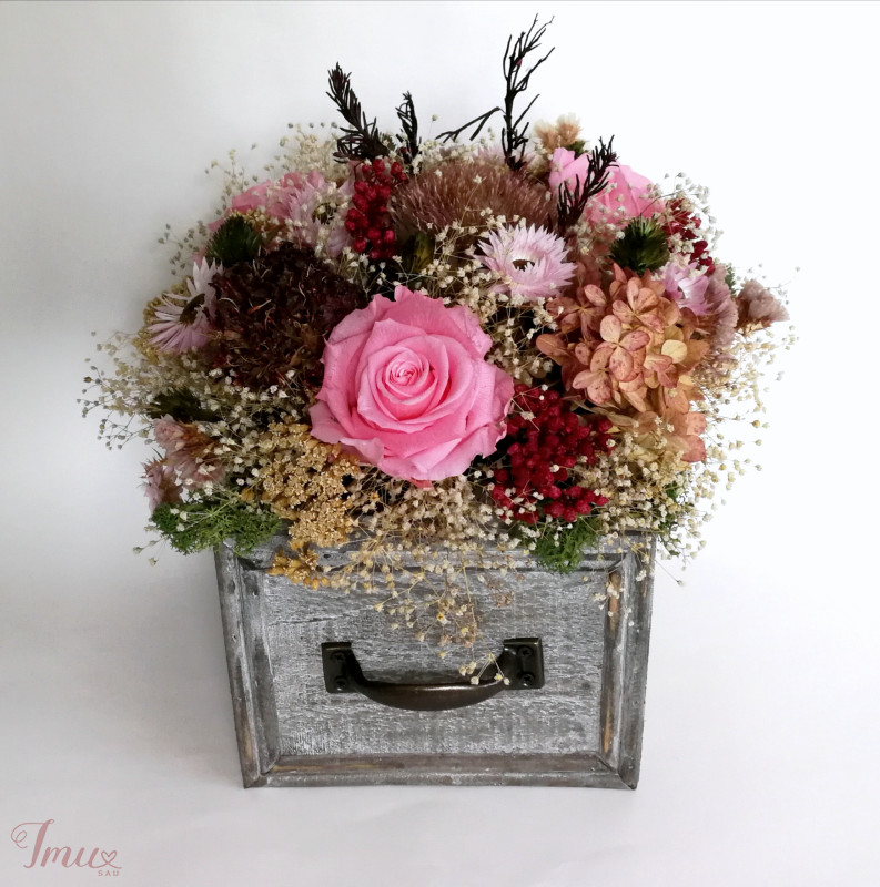 Medinė dėžutė su miegančiomis rožėmis ir kitais stabilizuotais augalais, sausuoliais. Dėžutė 14* 14,5 cm, aukštis 11cm. Visos kompozicijos aukštis apie 21 cm, žiedyno skersmuo apie 23 cm. Kaina 30 eur Ši kompozicija ilgai puoš namus (iki 3 metų). Nelaikykite saulėje ir drėgmėje. Dulkes atsargiai nupūskite su plaukų džiovintuvu. Visas pagamintas ir šiuo metu turimas kompozicijas rasite fb: https://www.facebook.com/geliudirbtuveles/shop/?view_public_for=1902406066516325&ref_code=mini_shop_profile_plus_shop_tab_cta&ref_surface=profile arba su mygtuku "pirkti" : Lietuviška prekė- https://www.lietuviskapreke.lt/parduotuves/dkfromlinen