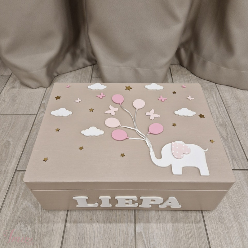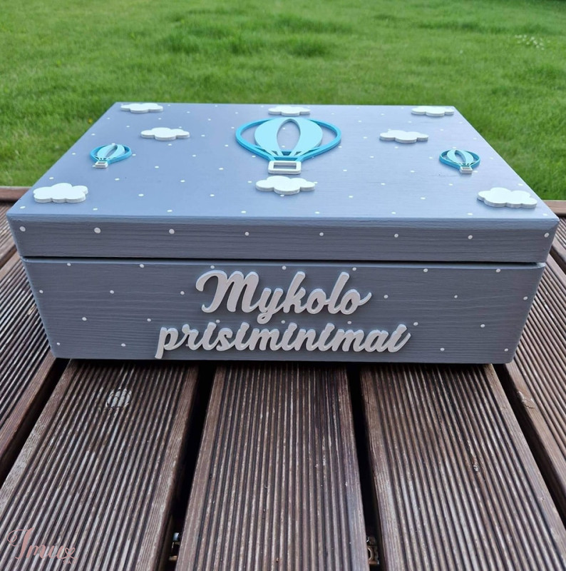 Prisiminimų dėžutės tai itin prasminga, šilta ir ilgaamžė dovana tiek vaikeliui tiek vaikelio tėveliams. Puikiai tinka dovanoti tokioms progoms kaip krikštynos, palankynos, pirmasis gimtadienis ar Kalėdos. Dėžutė skirta saugoti ne tik pirmuosisu mažylio daiktus, tokius kaip pirmieji drabužėliai, pirmoji sruogelė, pirmoji nuotraukytė, bet ir darželio, mokyklos darbeliai ir bet kokie kiti Jums svarbiausi ir šilčiausi prisiminimai.Dėžutė yra rankų daro, dažomos individuliai . Detalėms naudojamos vaikams draugiškos medžiagos : medinės dekoracijos. Dydis: 40 x 30 x 13 cm. Dėmesio! Prekės spalva gali šiek tiek skirtis nuo matomų nuotraukoje, dėl naudojamų skirtingų įrenginių. FB: Vaikystę prisiminus