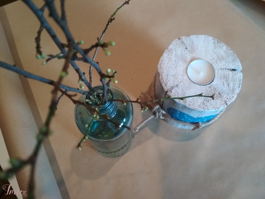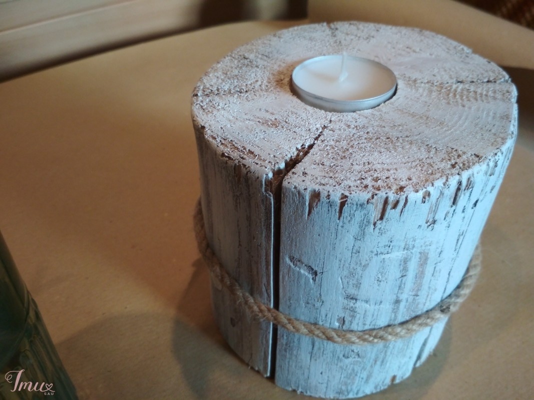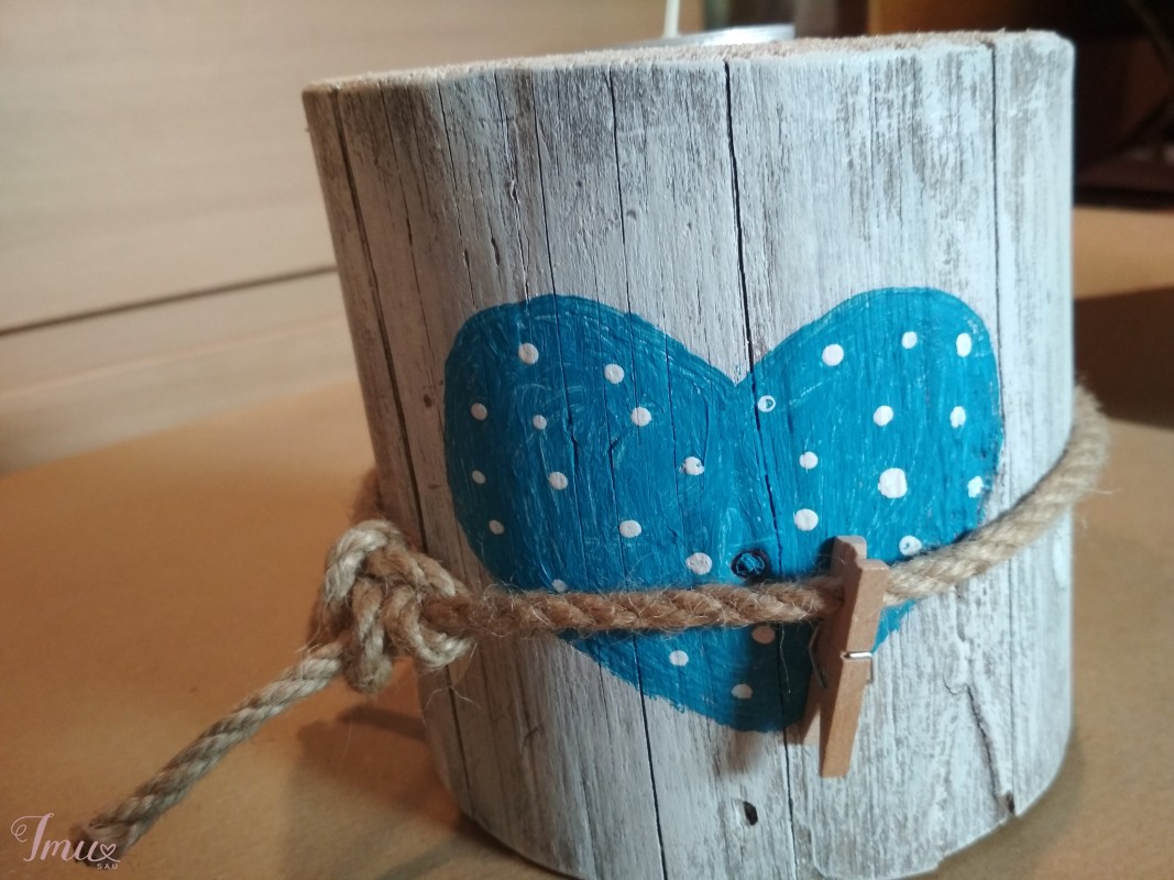 Rankų darbo žvakidė arbatinei žvakutei (pušies mediena, akriliniai dažai, virvė) 11x12 cm