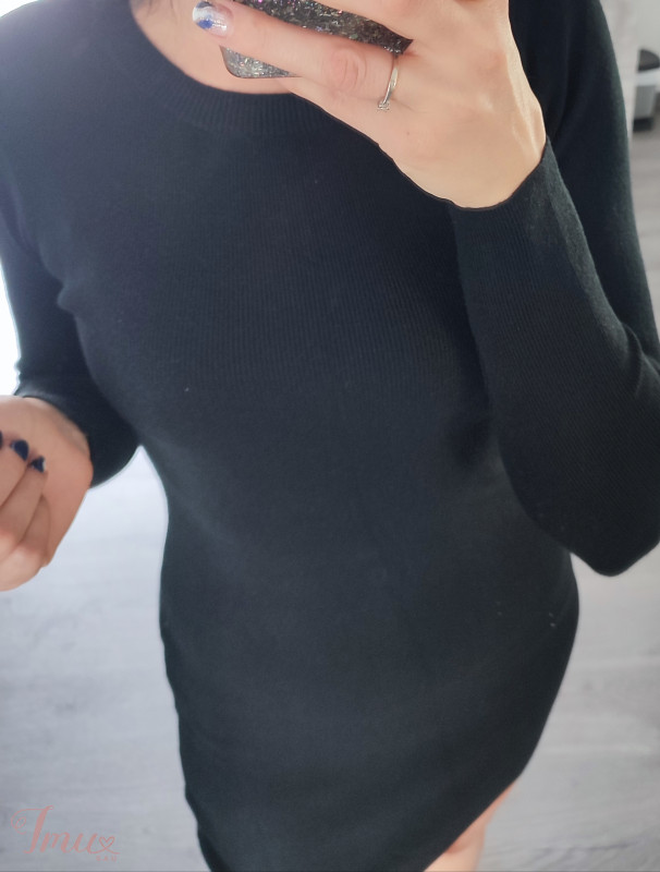 Juoda,megzta,mini suknelė. Medžiaga labai tampri,todėl puikiai išryškins jūsų figūrą. Dydį rašo M/L,bet sakyčiau S/M. Mažai nešiota