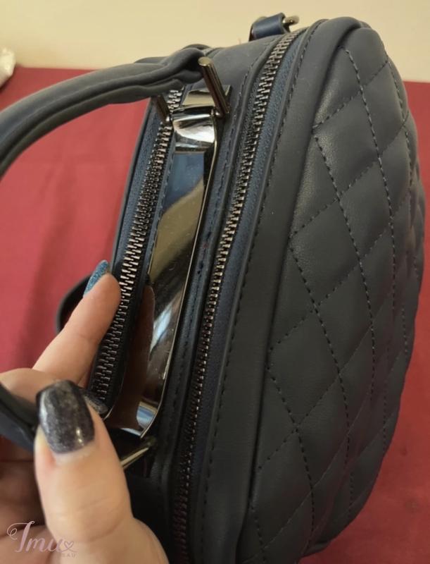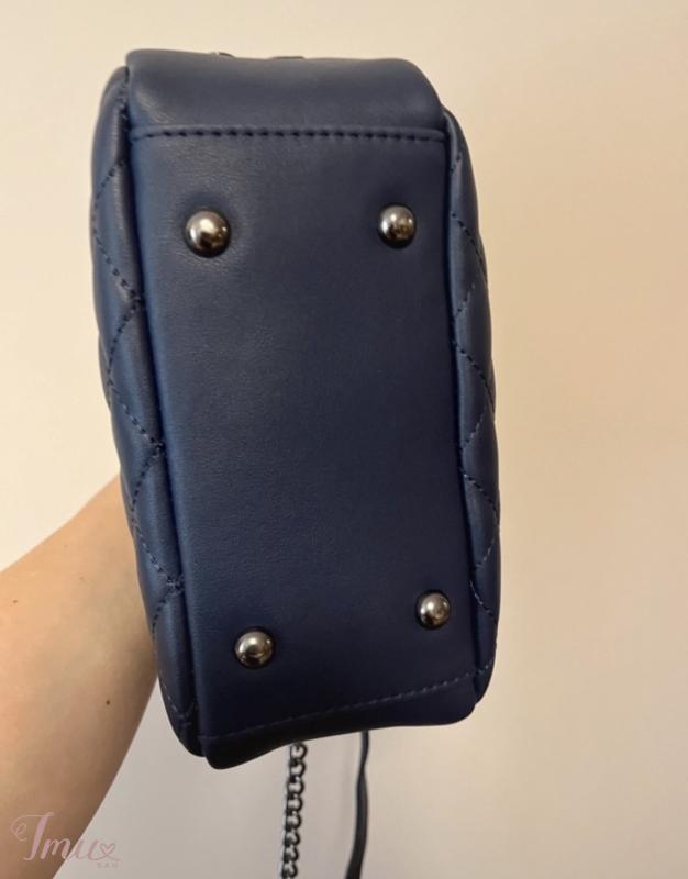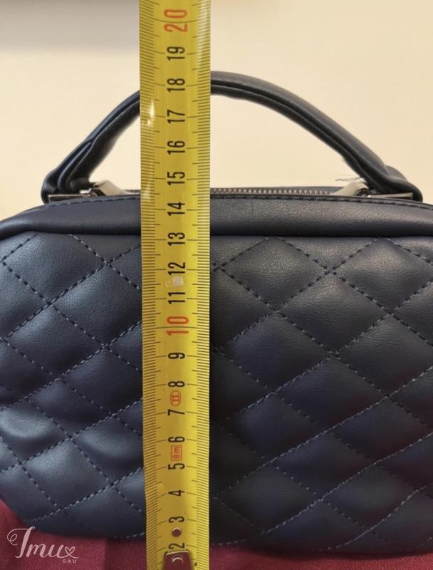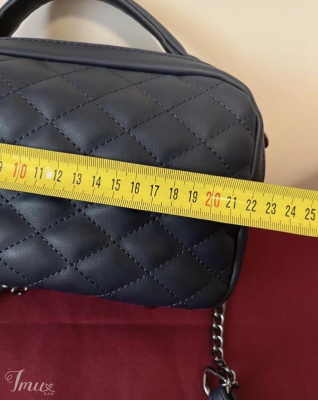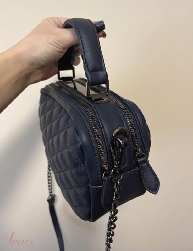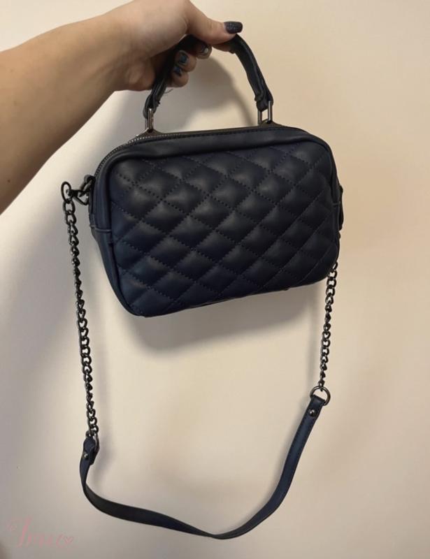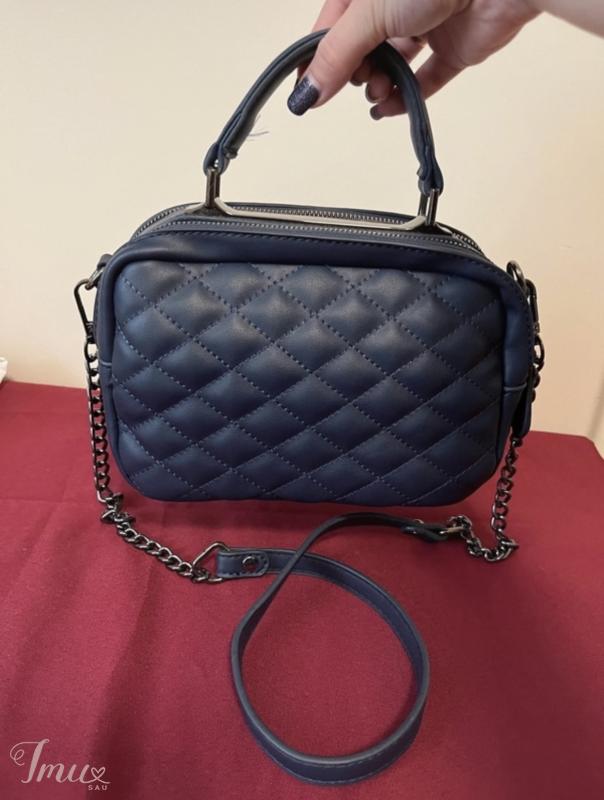 gražus tamsiai mėlynos spalvos rankinukas su grandinėle, pirktas naujas, du užtrauktukai bet skyrius bendras, viduje yra kišenele su užtrauktuku
