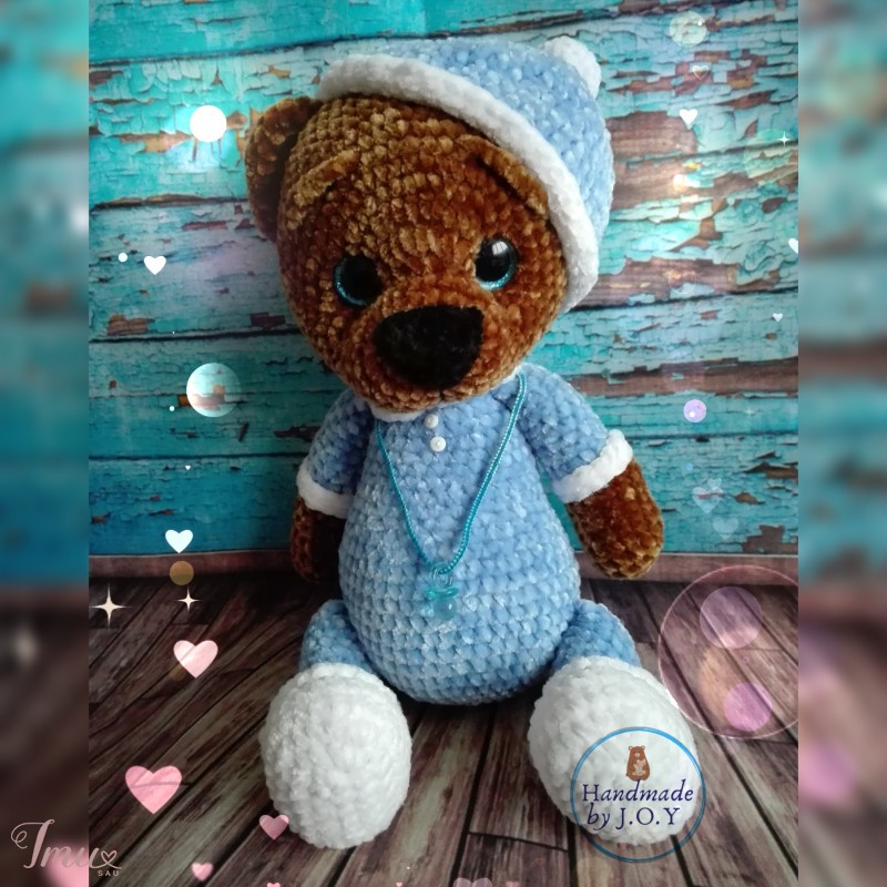 Pliušinis meškiukas taps geriausiu draugu miegant ir žaidžiant. Letenėlės įsiūtos, juda į visas puses. Kepurėlė nusiima. Aukštis 33cm. Verpalai: pliušinis velvetas. Užpildas: poliesteris. Šis žaislas parduotas, bet yra galimybė pagaminti panašų.