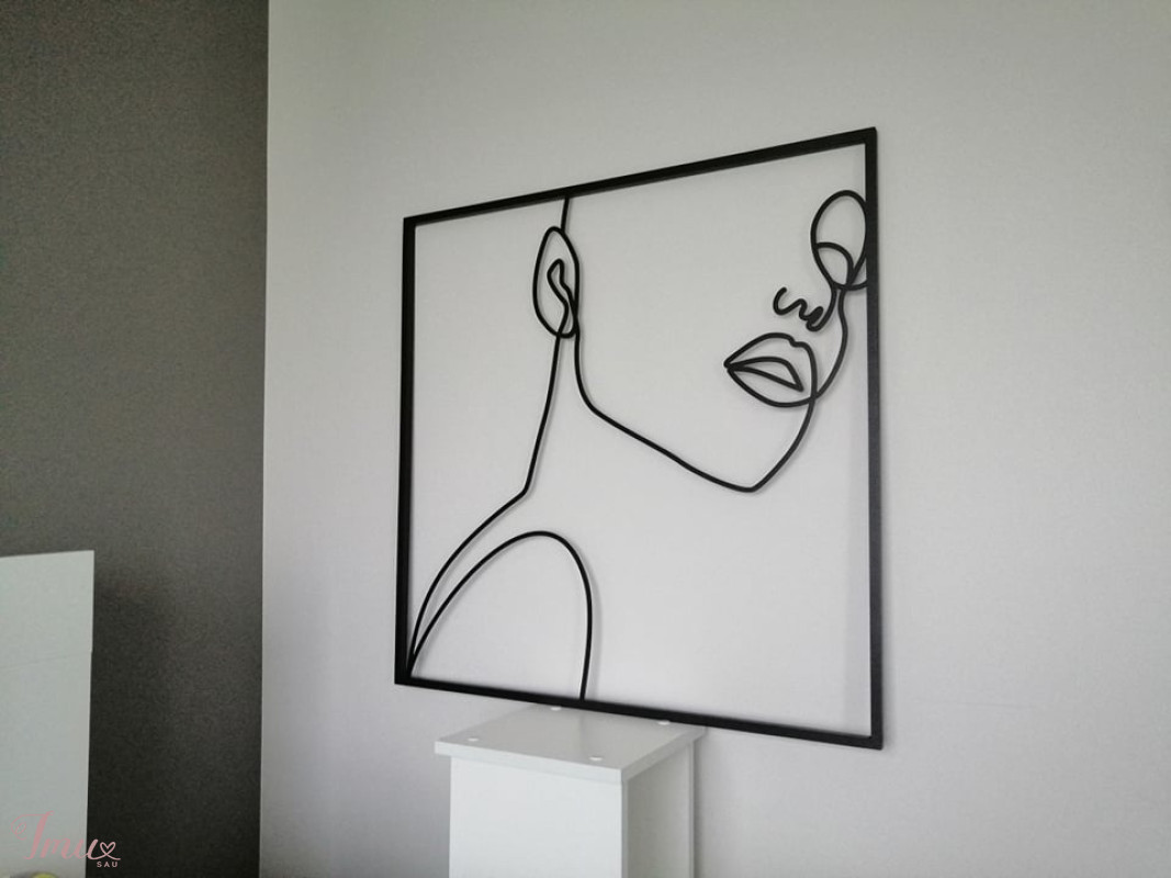 METALINIS PAVEIKSLAS "Siluetas" Metalinė dekoracija su linijiniu moters veido siluetu. Šis paveikslas puikiai derės minimalistinio ar "loft" stiliaus interjere ar biure. Juodos spalvos metalinis paveikslas - puikus sprendimas, norint subtiliai dekoruoti namų sienas, nepridedant prie interjero papildomų spalvų. SIUNČIAMA TIK PER KURJERĮ. Savybės: Dydis 60x60 cm Svoris 1,3 kg Metalo storis 2mm Rėmelio storis 12 mm