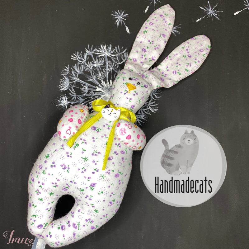 Minkstas gėlėtas zuikis. Medvilninis vienetinis suvenyras - žaislas vaikams ir ne tik. Sudėtis - 100% medvilnė, kamšalas - sinteponas